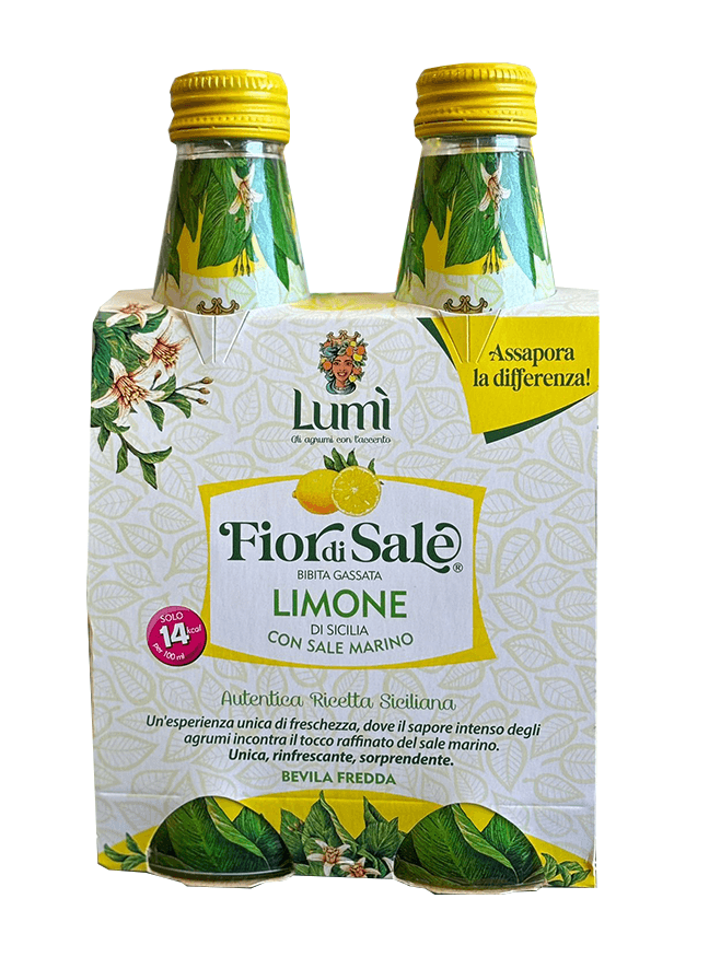 Scopri la Limonata Fior di Sale Lumì : un’esperienza autentica che unisce il succo del migliore limone siciliano Lumì (15 %) e un tocco minerale dato dal pregiato Fior di Sale dei mari siciliani . Ispirata a un’antica ricetta tradizionale, questa bevanda analcolica frizzante è dissetante, raffinata e perfetta per ogni momento della giornata. Grazie al basso contenuto calorico (solo 14 kcal per 100 ml) e all’assenza di conservanti e coloranti , è ideale anche per chi desidera uno stile di vita più sano senza rinunciare al gusto. Perfetta da gustare ghiacciata, da sola o come base per cocktail creativi e aperitivi originali. Prodotta con ingredienti selezionati e in formato pratica da 4 bottiglie in vetro da 250 ml, la Limonata Fior di Sale Lumì porta in tavola la freschezza e l’autenticità della Sicilia.